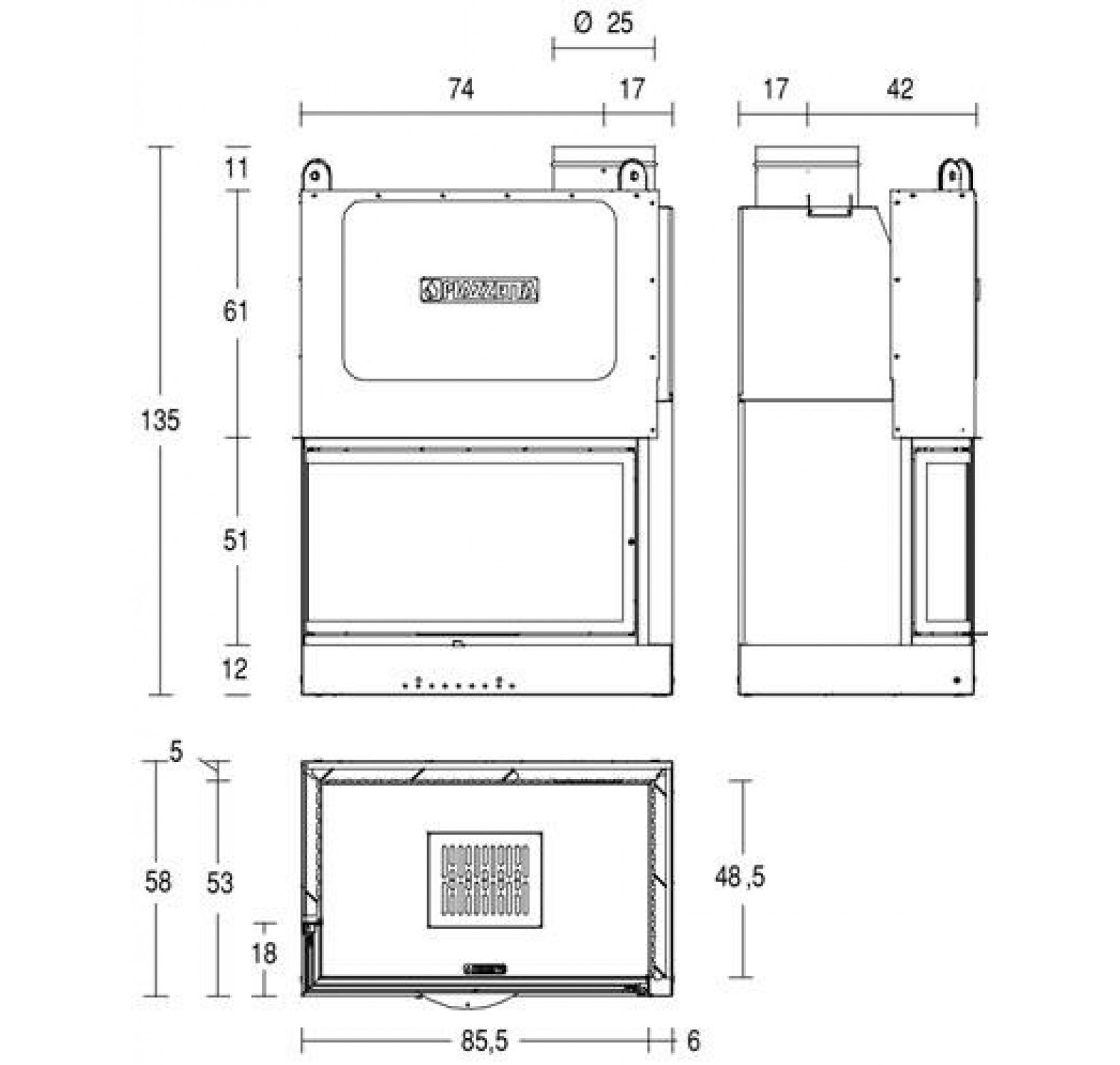 Каминная топка PIAZZETTA MA 281 SL DX произведена в Италии.