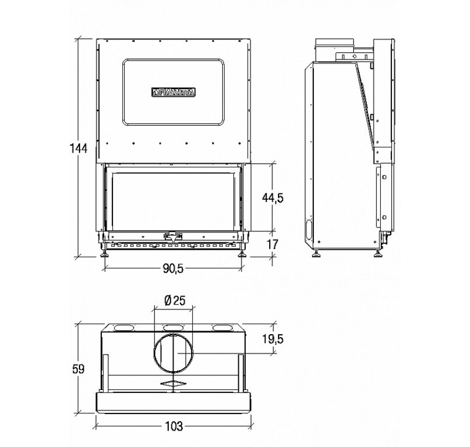 Каминная топка PIAZZETTA ME 90/44 произведена в Италии.