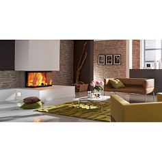 - Топка с трехсторонним видом на огонь, 3 стекла: на фасаде + справа и слева
