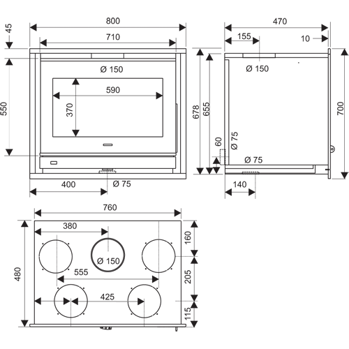 | Диаметр дымохода, мм | 150 |