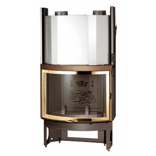 Чугунная топка для пристенной каминной облицовки. Выпуклая дверца с рамкой из золотистого металла. Керамическое обзорное стекло сферической формы, выдерживающее высокую температуру. Дверца открывается вверх и в сторону. Система очистки стекла. Колосниковая решетка из чугуна.