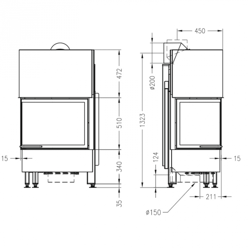 - Опциональная комплектация дополнительной задней дверцей для закладки дров из подсобного помещения.