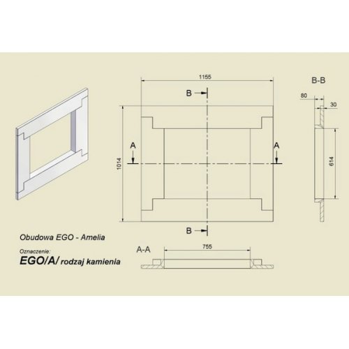 Каминный портал Kratki Travertyn для топок Amelia, Felix