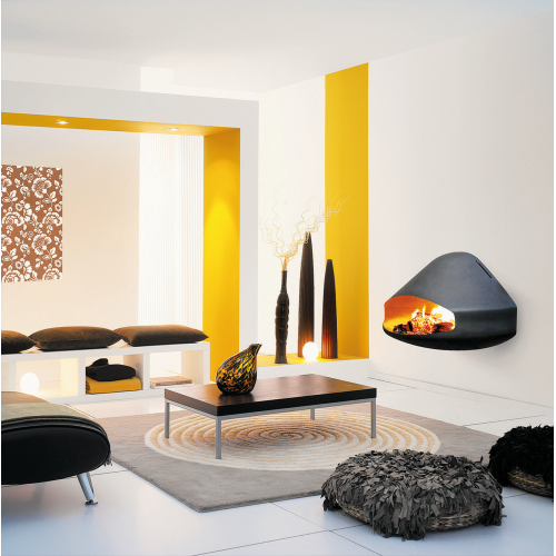 Miofocus- пристенный дровяной камин, с дымоходом, установленным с обратной стороны. Этот небольшой камин с округлыми формами и «улыбающейся» топкой подарит нежность поцелуев огня.