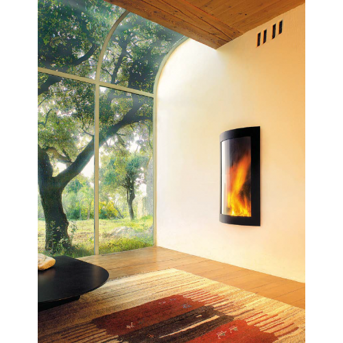 Выпуклая пирокерамическая стеклянная дверца на петлях, вес 85 кг, топка из стали, съемная чугунная решетка. Контролируемая циркуляция воздуха в самой раме предотвращает загрязнение стекол. Рама обеспечивает изоляцию от окружающих поверхностей, матовая черная краска высокой термостойкости. Верхние и нижние вентиляторы обязательны. Гарантирована эффективность при минимальной длине трубы (внутренней и внешней) в 4 м.