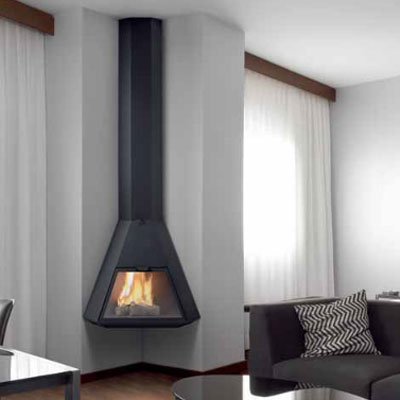 Камин подвесной, угловой, черный.