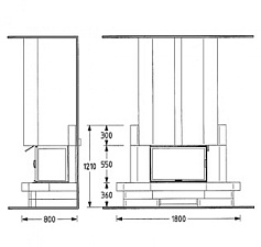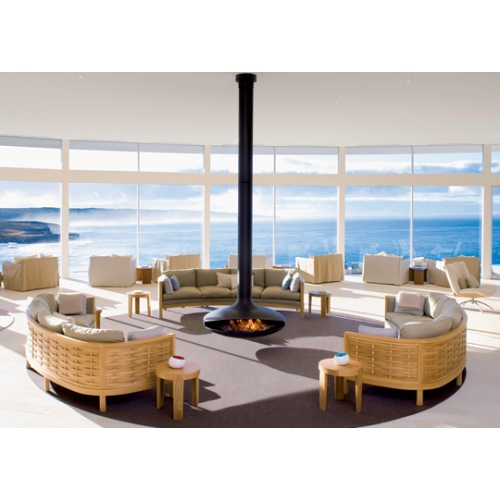 - Свободно стоящий камин прерывистого горения, с открытой топкой.