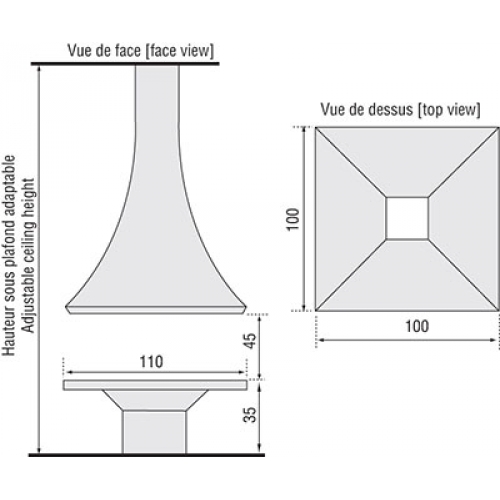 - > Все модели представлены с высоты под потолком в 250 см. Высота регулируется в соответствии с вашими требованиями, дымоходов и скатов крыши.