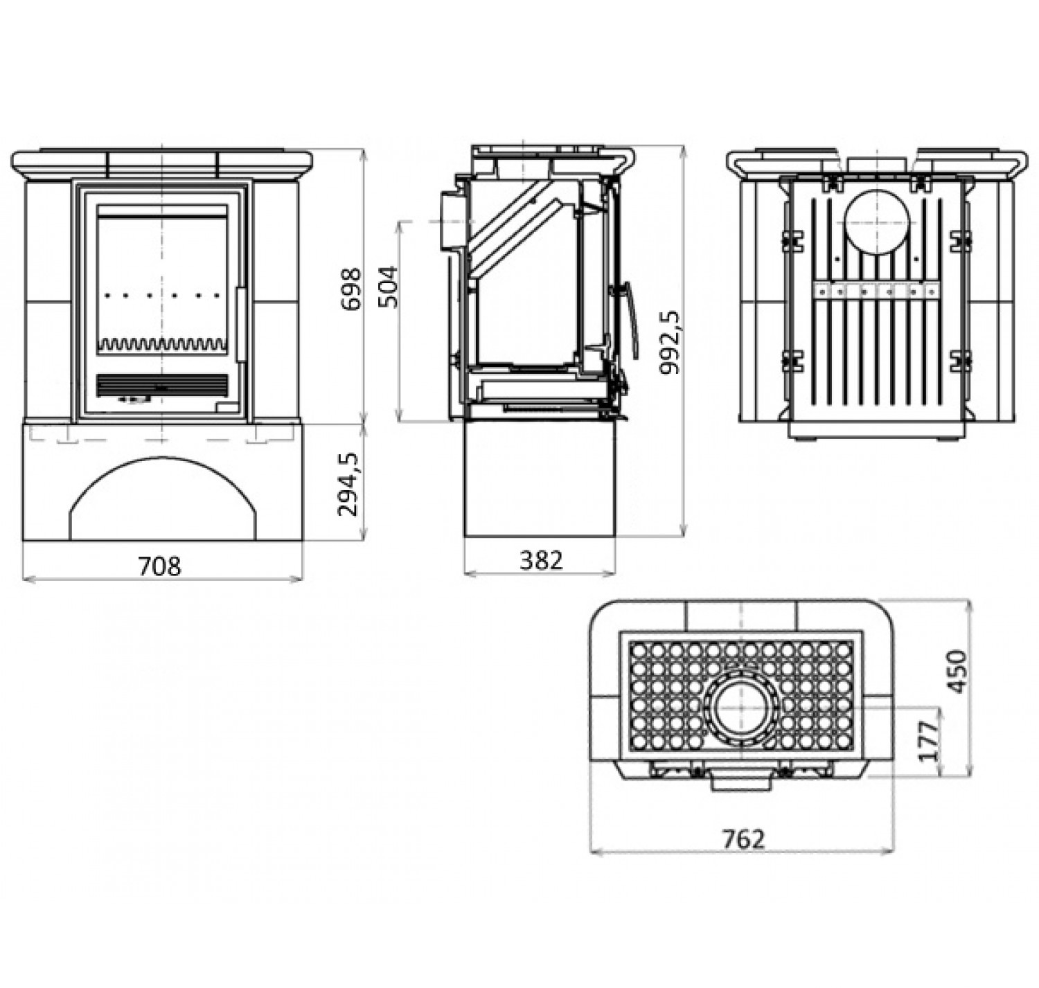 Кафельная печь Bavaria K - вставка комбо, прямой цоколь бутылочное стекло, с теплообменником (4,2 кВт в воду)