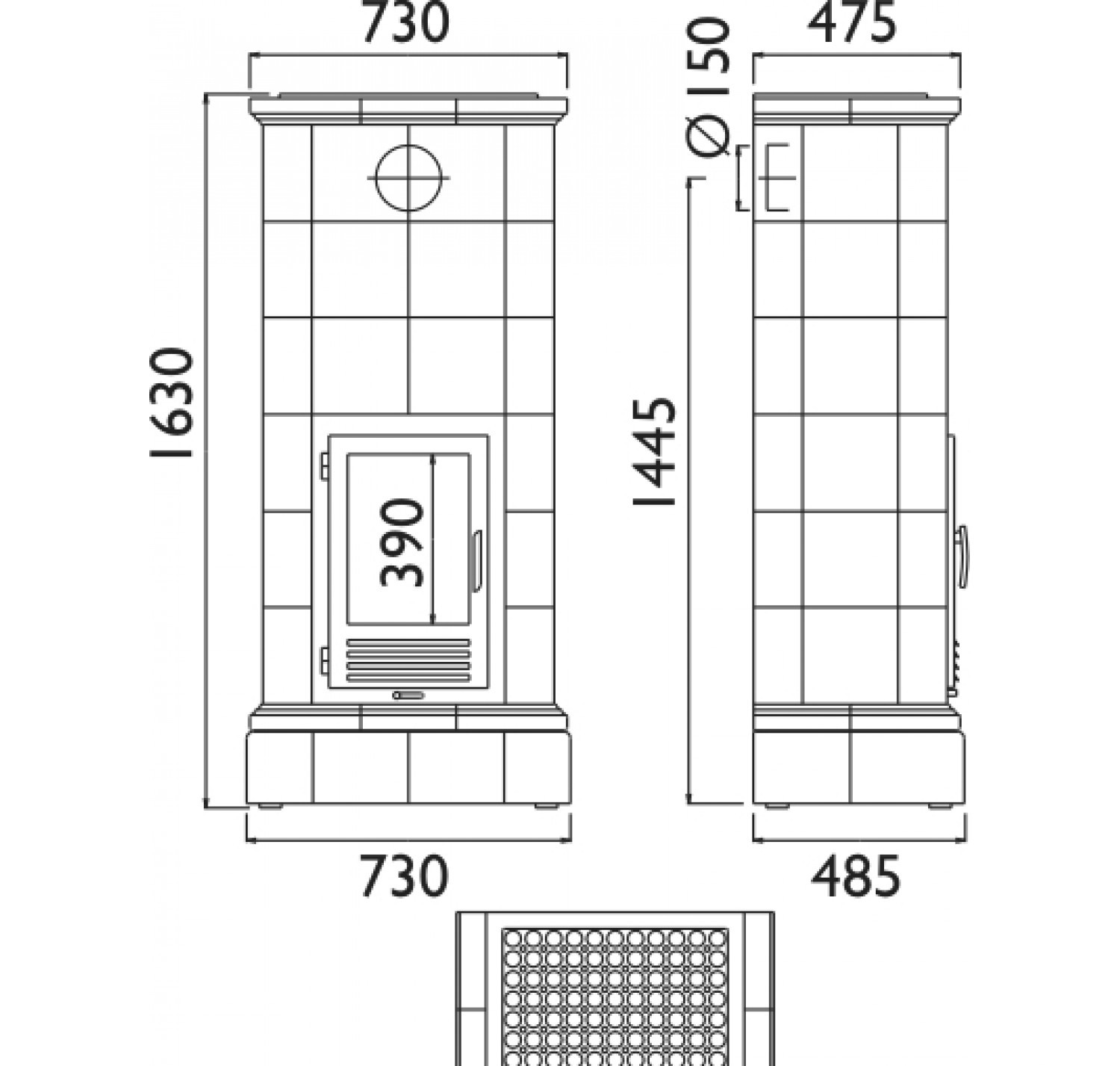 Топка выполнена из стали высокого качества с футеровкой вермикулитом либо из чугуна. Увеличенная площадь кафельной печи будет долго отдавать тепло.