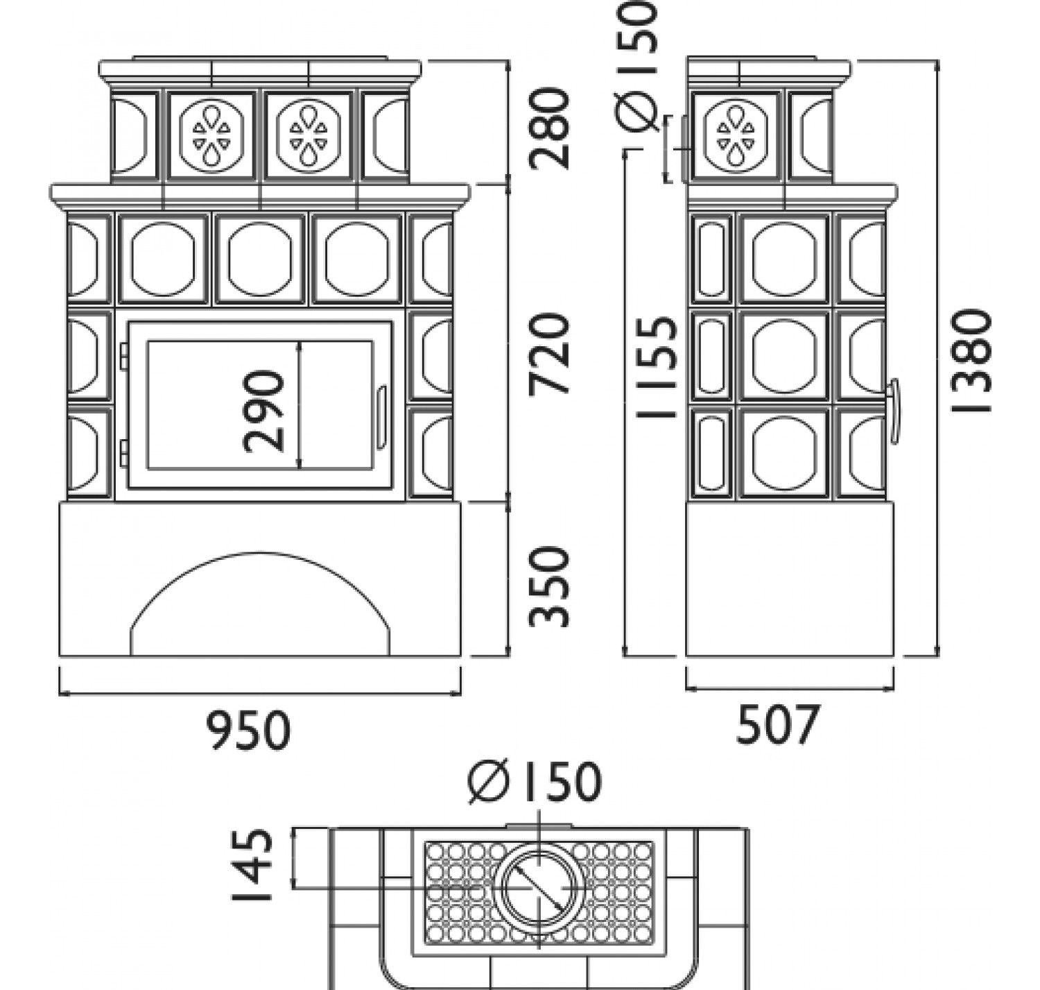 У печи Karelie белый цоколь с вместительной нишей для дров.