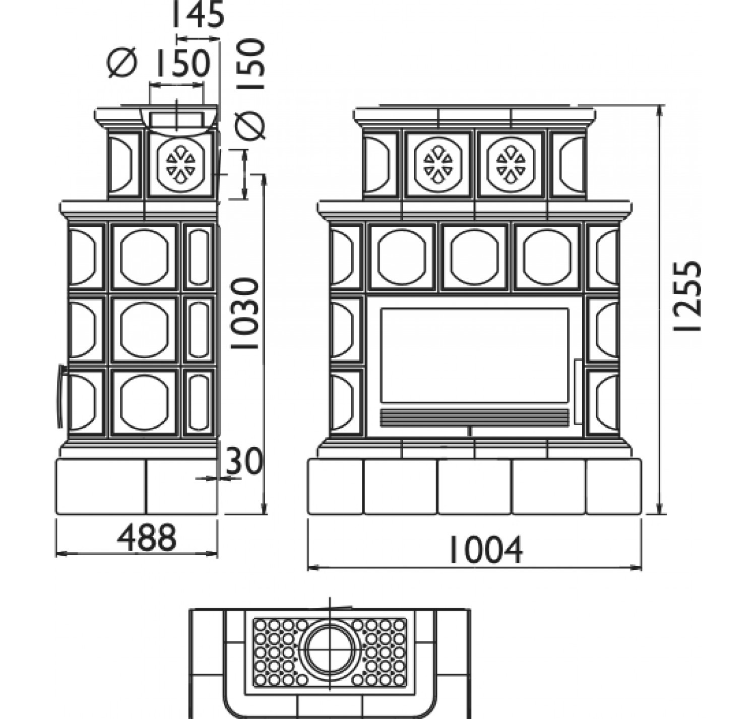 Кафельная печь Karelie 7 кафельный цоколь, с теплообменником