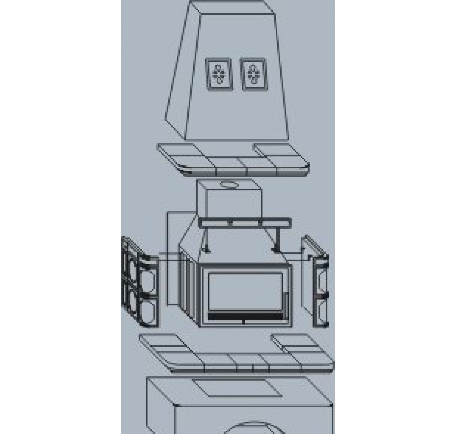 Кафельная печь- камин Laponie по красоте и техническим данным ни чем не уступает большим каменным каминам. Вставка печи стальная. Цветовую гамму кафеля можно подобрать на Ваш вкус: песчаная, зеленая, коричневая. Внизу печи как и во многих печах АВХ есть ниша для дров.