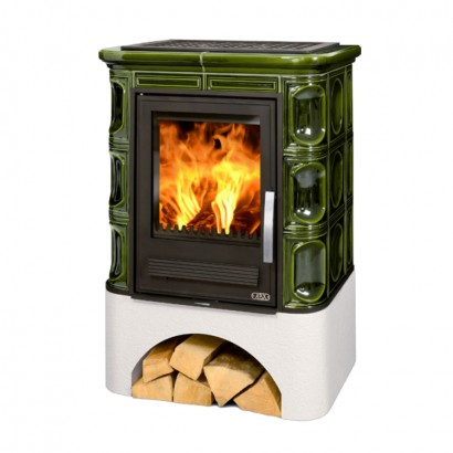 Кафельная печь Marina KP вставка комбо, белый цоколь зеленая, с теплообменником