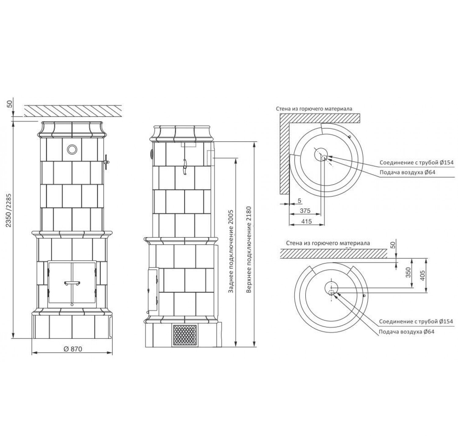 - Диаметр дымохода, (мм) 150 мм.