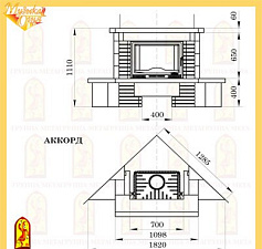 Предтопочная и надтопочная часть выложена шамотом песочно-жёлтого цвета. Каминная балка изготовленная из МДФ и покрытая шпоном дуба, послужит отличной полкой для каминных аксессуаров, таких как часы, канделябры, рамки с фотографиями и др.