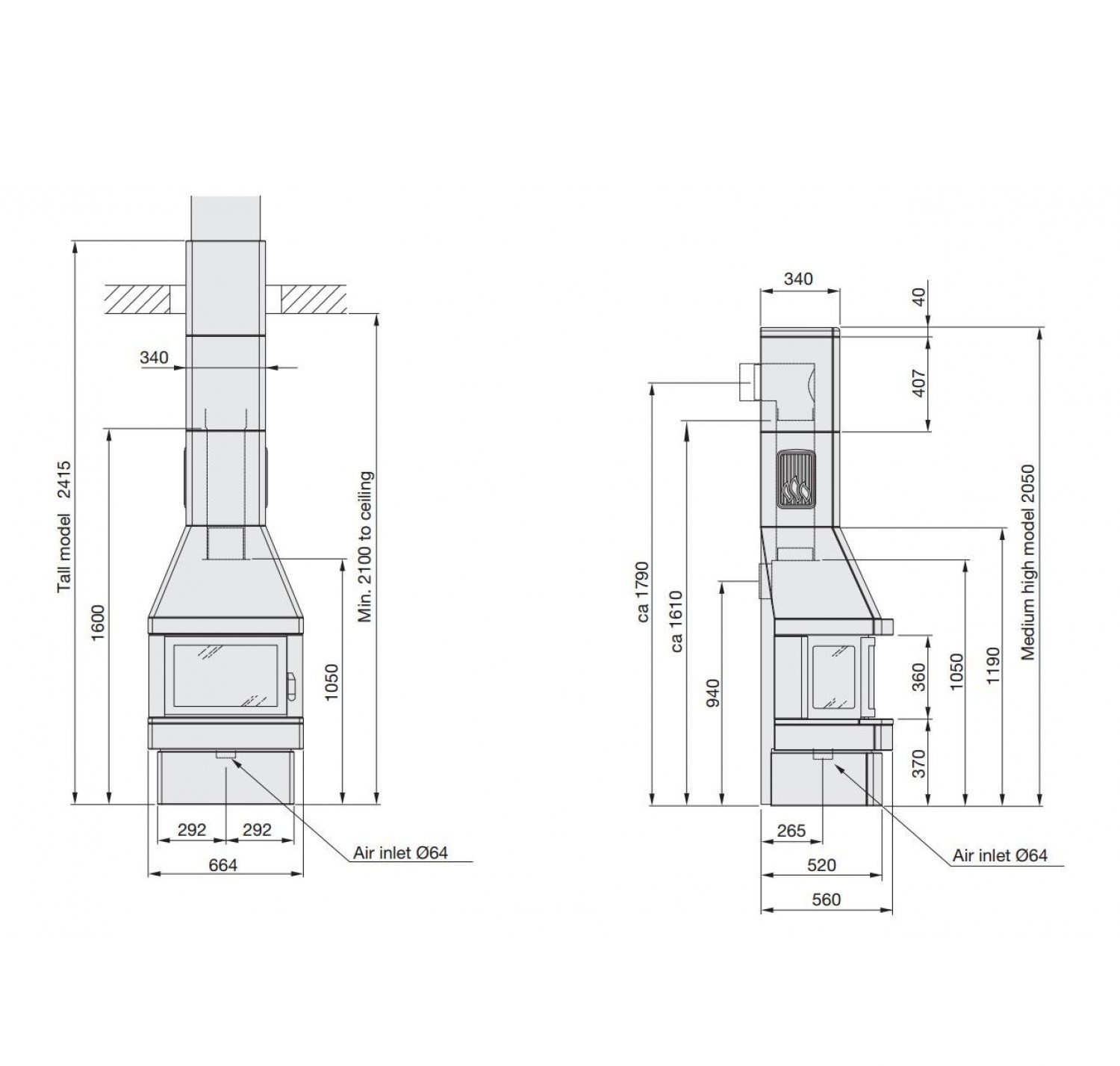 Благодаря специальной системе обогревания с конвекционными трубами внутри топки, тепло распространяется молниеносно, как только в камине будет разведен огонь. Благодаря талькомагнезиту и дополнительному нагревательному магазину под колпаком печи, печь сохраняет тепло еще в течение многих часов после того, огонь не будет гореть. Удачное сочетание характерных качеств камина и талькомагнезита. Передняя часть камина легко открывается и закрывается. Вытяжной короб для золы с крышкой облегчает чистку.