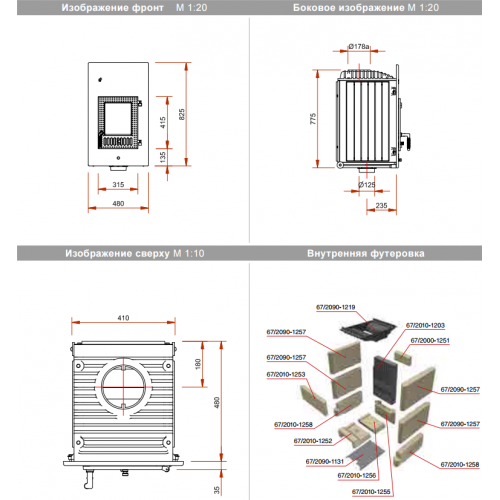 - Вид топлива - дрова;Патрубок подачи воздуха, диаметр 125мм;Открывание двери вправо, самозакрывающаяся;Двойное стекло;