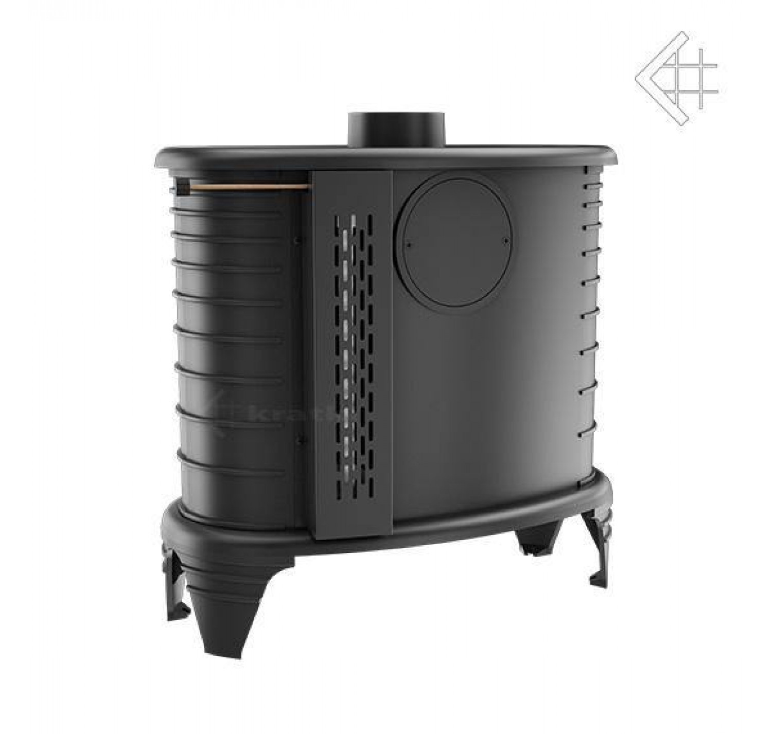 Оригинальная модель чугунной печи польской компании «Kratki.pl» отличается стильным, округлым дизайном, что придает ей изящные и своеобразные формы. Но в функциональном плане печь остается отличным отопительным прибором. Чтобы еще больше повысить эффективность отопительного прибора, необходимо использовать чугунную печь с установленной на ней опцией «термостата». Это устройство устанавливается на