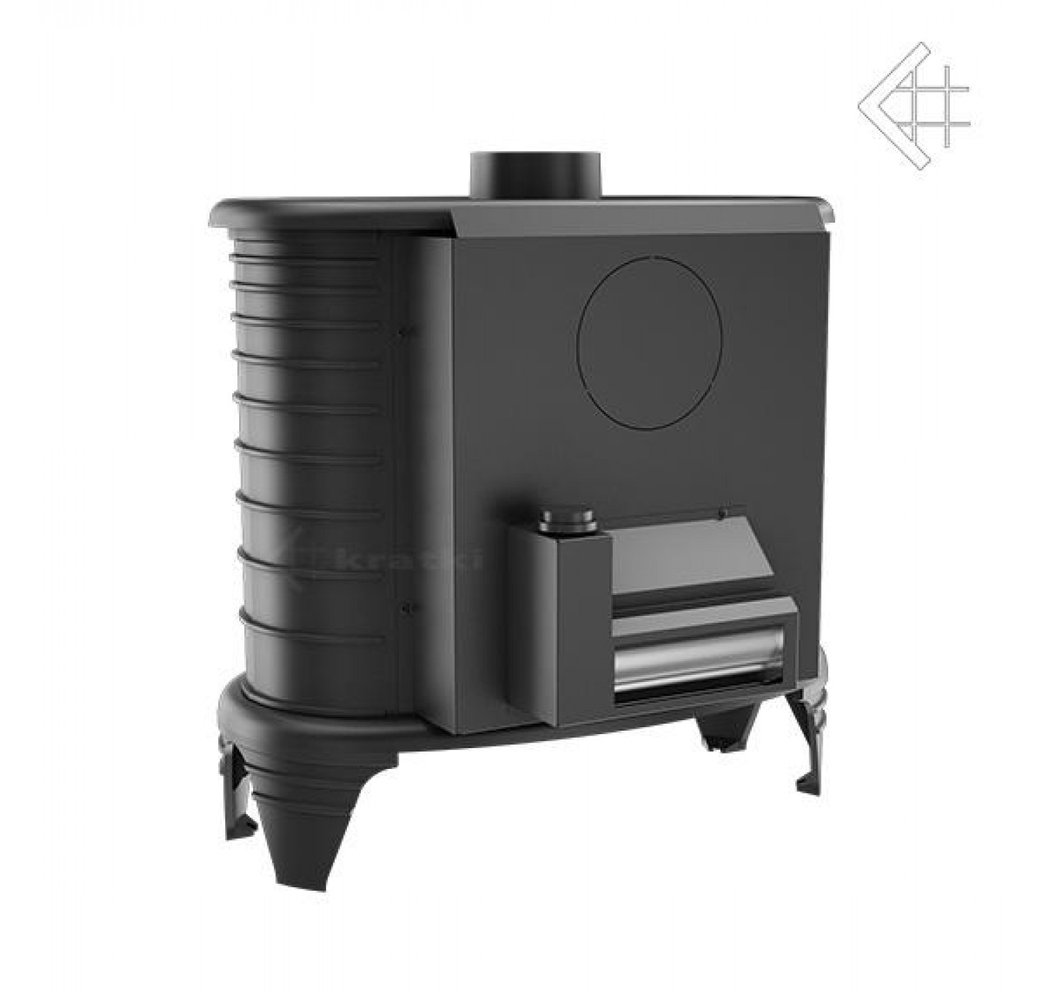 Оригинальная модель чугунной печи польской компании «Kratki.pl» отличается стильным, округлым дизайном, что придает ей изящные и своеобразные формы. Но в функциональном плане печь остается отличным отопительным прибором. Эта печь также может быть оснащена турбиной принудительной конвекции нагретого воздуха от печи в помещение. Наличие турбины в несколько раз повышает скорость прогрева помещения. Горячий воздух не «застаивается» около отопительного прибора, а сразу начинает поступать в непрогретые участки, благодаря постоянному воздушному потоку. Турбина потребляет небольшое количество электроэнергии, а эффективность работы печи в момент первоначального прогрева помещения повышается многократно.