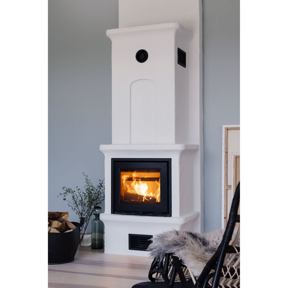 Пристенная печь-камин с верхним подключением дымохода. Вставка - SK 1002 (включена в стоимость).