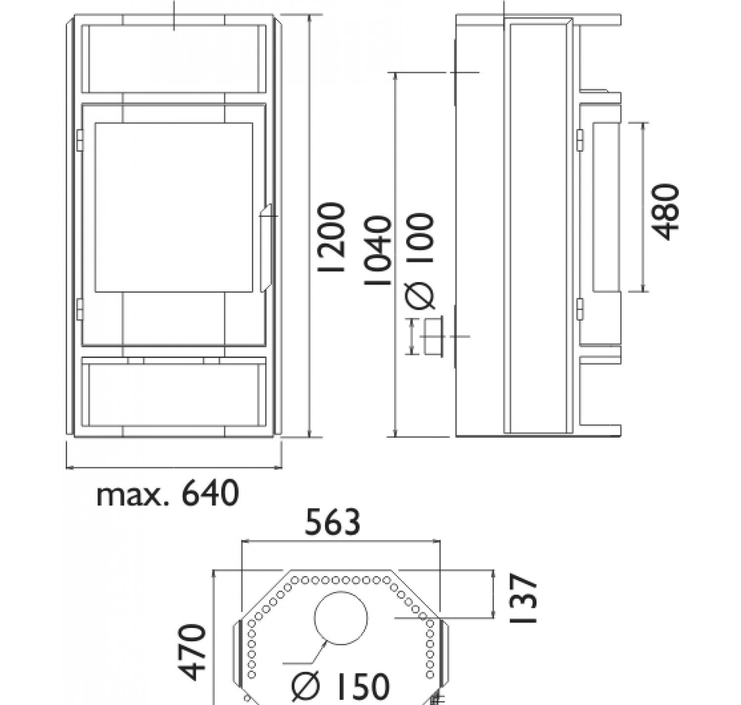 Топка этой печи изготовлена из стали, оснащена стеклокерамическим стеклом, выдерживающим температуру нагрева в 700 градусов С. Предусмотрена система двойного дожига, функция медленного горения и система «чистое стекло». Под топкой печи расположена удобная ниша для хранения дров, а в верхней части камина расположена ниша для разогрева пищи.