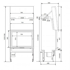 Пристенный камин с верхним подключением дымохода, предназначенный для отопления больших помещений. В стоимость включен цоколь.