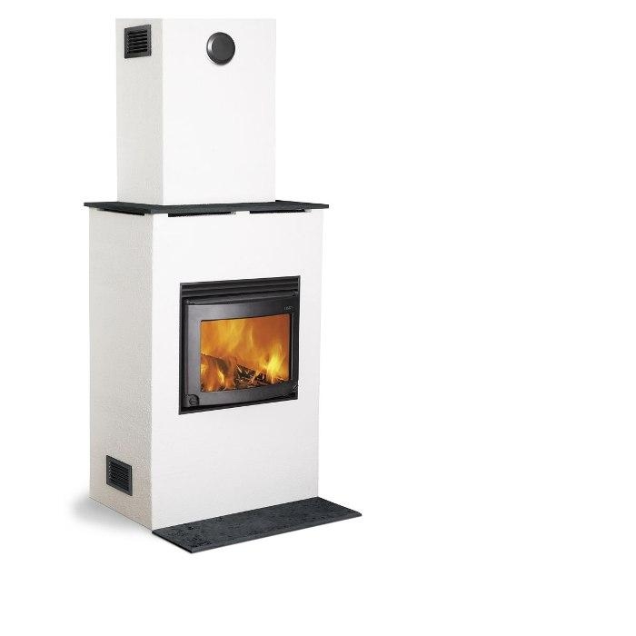Легкий для сборки комплект секций из вулканической пемзы. По желанию поверхность можно покрывать штукатуркой. Верхняя полка из гранита. Подсоединение к наружному воздуху и защитная плита для пола опционально. Каменная печь Keddy Nova спроектирована для установки у стены.