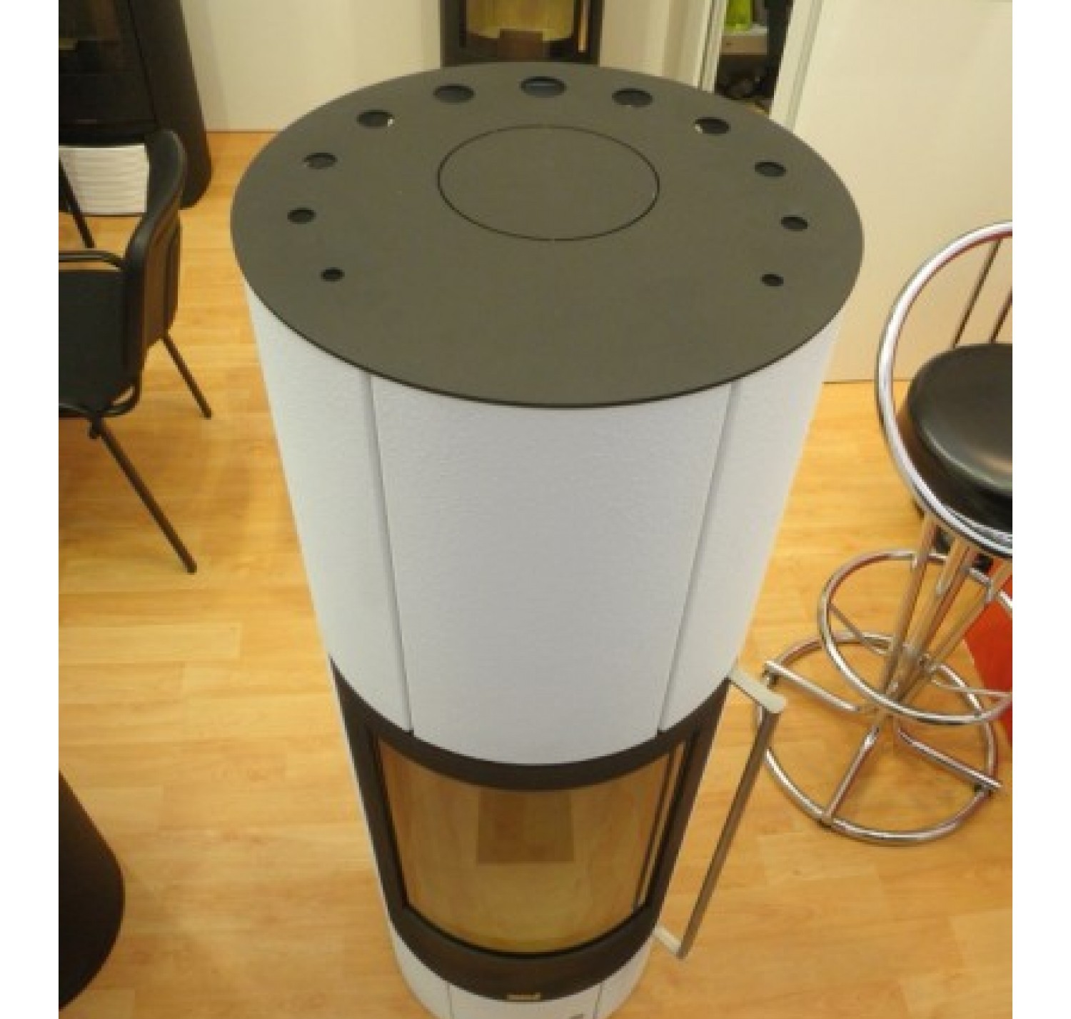Топка представленной печи изготовлена из стали с большим стеклокерамическим стеклом, выдерживающим нагрев в 700 градусов С. Имеются системы двойной дожиг и чистое стекло, функция медленного горения.