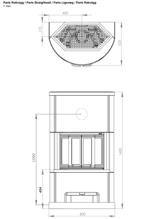 - Диаметр дымохода, (мм) 150