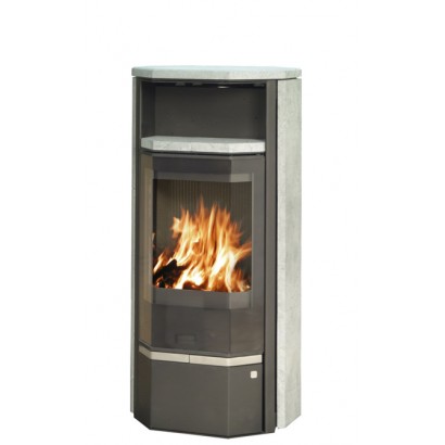 Топка этой печи изготовлена из стали, оснащена стеклокерамическим стеклом, выдерживающим температуру нагрева в 700 градусов С. Под топкой печи расположена удобная ниша для хранения дров, а в верхней части камина расположена ниша для разогрева пищи.