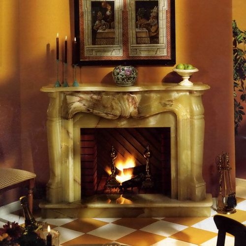 Камин выполнен из мрамора - Onix. Возможно исполнение и в других цветовых гаммах.