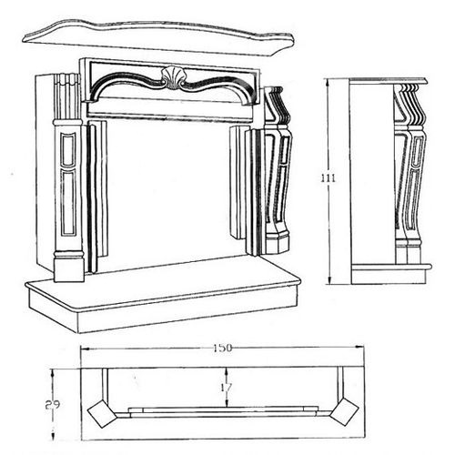 Модель представлена в мраморе Onix, но под заказ можно выбрать любой мрамор по образцам. Для соединения портала с топкой любого размера служат дополнительные пластины того же мрамора, что и портал, которые можно приобрести отдельно.
