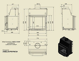 Топка изготовлена из толстого чугуна, ширина стенки 8-10 мм. Благодаря конструкторским особенностям увеличен нагрев поверхности вставки. Дровяная топка Ameliа имеет призматическое термостойкое стекло, способное выдержать температуру до 800 градусов Цельсия.
