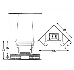 - Поперечное сечение отверстия выхода дыма - Ø250.