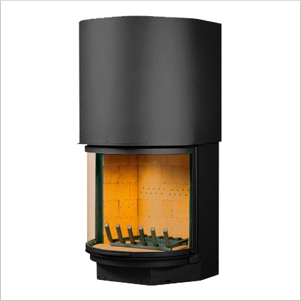 Панорамная топка черного цвета, кирпичи - стандартного цвета. Закругленное стекло.