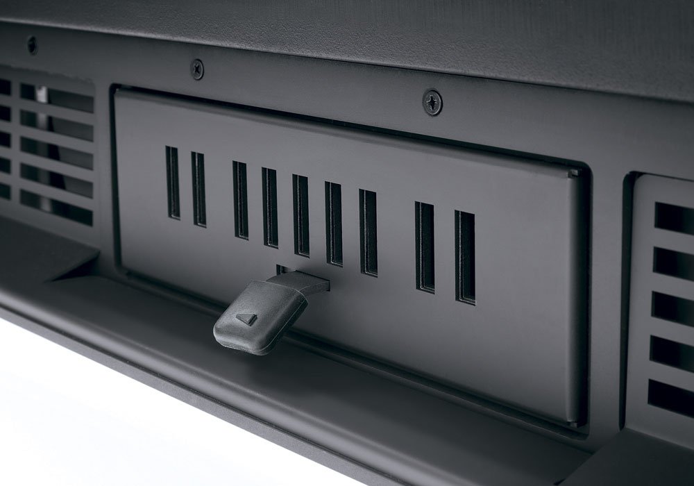 - Вентилируемая версия оснащена двумя осевыми вентиляторами, проводкой, штепселем и зондом для работы в автоматическом режиме (когда огонь гаснет, вентиляторы останавливаются сами)