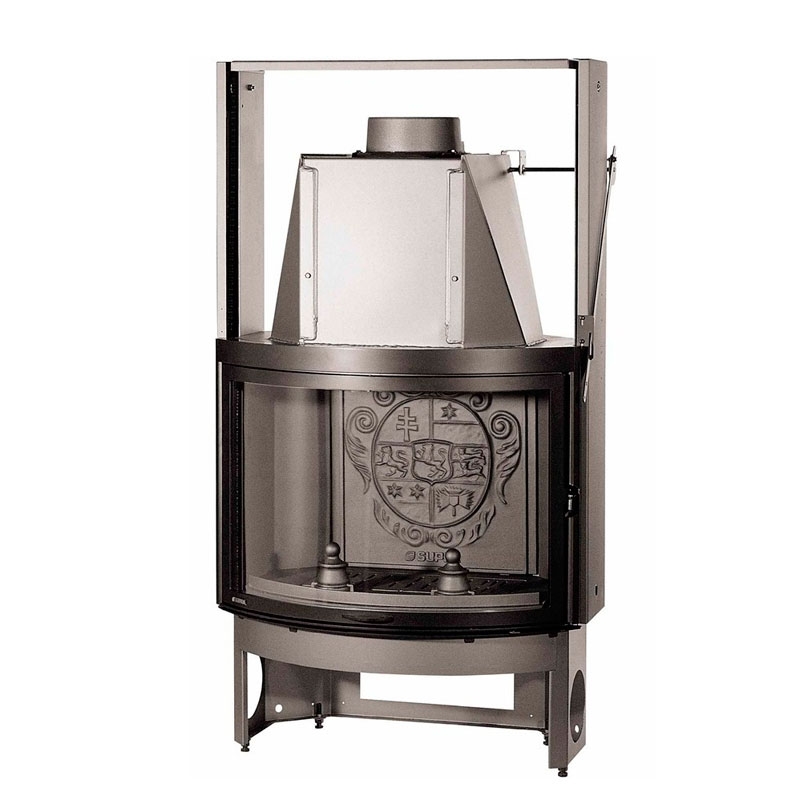 Чугунная вставка. Дверца открываемая наверх с закругленным стеклом.