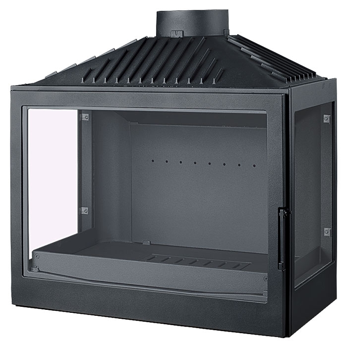 Чугунная каминная топка с дымосборником. С правым и левым боковыми стеклами. Цвет - серый.