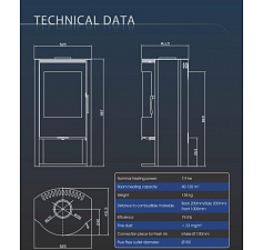 Топка с цельным стеклом, рамка черного цвета. Дверца с подъемным механизмом.