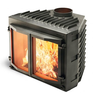 Каминная топка SK 202 (Keddy) со сплошным призматическим стеклом в черном цвете.