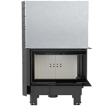 Дверца открывается вверх. Чугун "Волны". Отделка "Премиум". Плоская черная дверца.