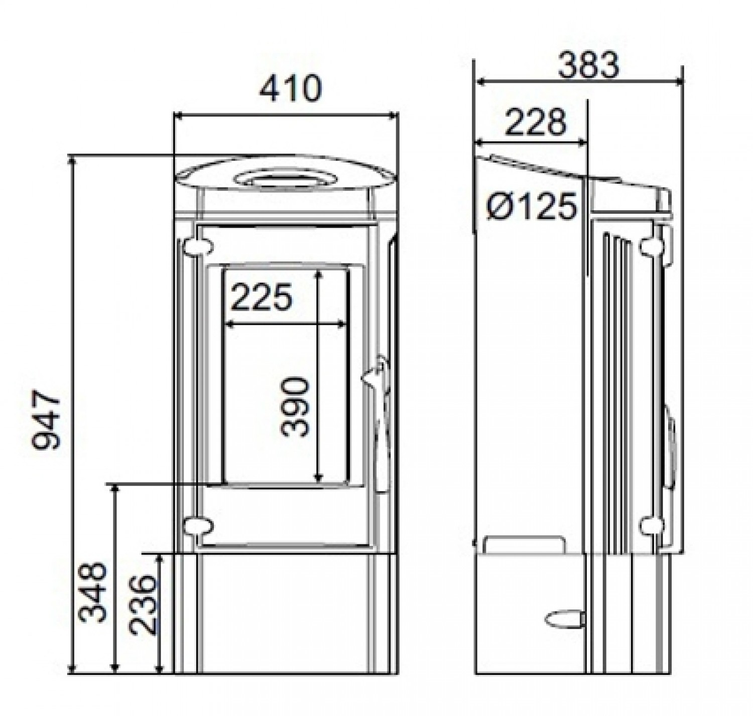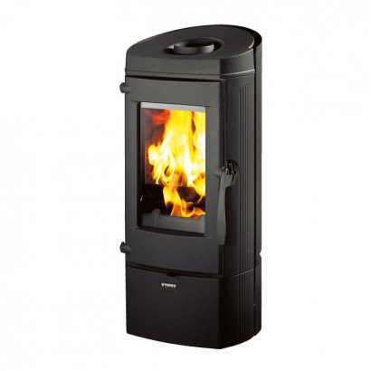Цельночугунная печь из черного чугуна с закругленными боковинами.