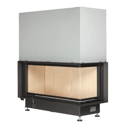 Угловая каминная топка с Г-образным стеклом. Боковое стекло слева. Топочная камера футерована шамотом. Подъёмный механизм двери (система Easy-Lift). Ширина дверки 982+372 мм. Высота дверки 422 мм. Возможно подключение воздуха извне.