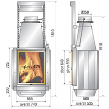 Brunner eck-kamin 51/52/52 side-opening, чугунный дымосборник 45?, нержавеющие рамки