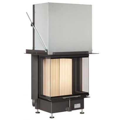 Трёхсторонняя каминная топка. Топочная камера футерована шамотом. Подъёмный механизм двери (система Easy-Lift). Ширина дверки 274+605+274 мм. Высота дверки 539 мм. Возможно подключение воздуха извне.