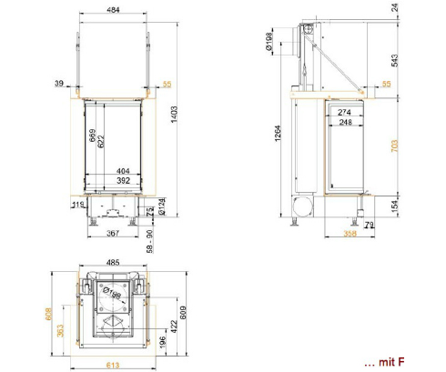 Топка Panorama-Kamin 70/25/40/25 с подъмом, с одним стеклом.