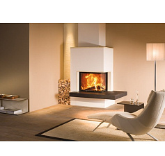 Каминная топка с прямым стеклом. Топочная камера футерована шамотом. Подъёмный механизм двери (система Easy-Lift). Ширина дверки 760 мм. Высота дверки 635 мм. Возможно подключение воздуха извне.