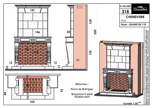 Цена указана за камин в стандартном исполнении (см. чертеж) из указанных материалов с открытым очагом.