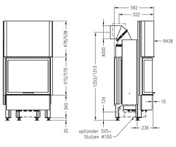 Топка на фото - CG 701 L. Ссылки на подходящие к данному камину топки указаны справа под техническими характеристиками.